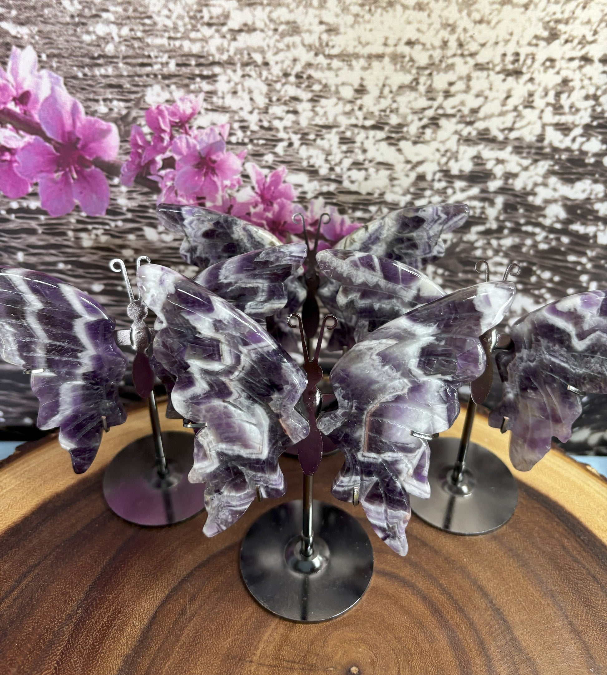 to clearly see our path forward. It dissipates negative energy, cleanses our aura & brings harmony to our lives. It is a wonderful guiding stone and attracts positivity and clarity combining the enhancing & strengthening qualities of Quartz with the calming and stress relieving qualities of Amethyst. It will protect and calm an overactive mind and is considered to be lucky. Chevron Amethyst offers spiritual protection and a connection with the Divine, our higher consciousness and our spirit guardians.