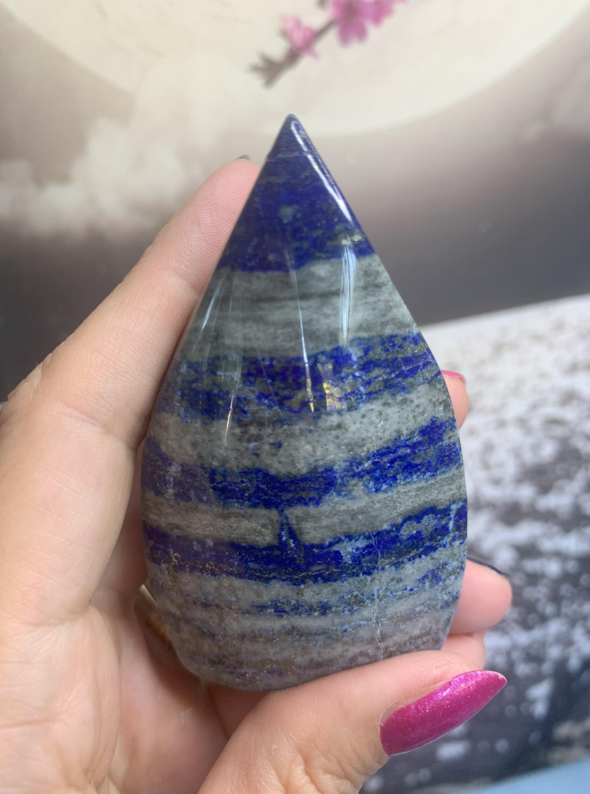 Lapis Lazuli is a protection stone, used to ward off negativity and is associated with opening the Third Eye Chakra. It assists by bringing clarity, focus and objectivity to our thoughts. It helps us to speak our truth and inspires confidence, helping us to express our feelings and emotions. It encourages us to live our best life, honestly and authentically, with integrity and compassion. It draws on our personal power & guides us through new ventures. It is used to encourage self - awareness, self - confidence, self - knowledge, peace and harmony, compassion, morality, putting the wearer in a good mood throughout the day. Can be left in sunlight and may not be suitable for water.