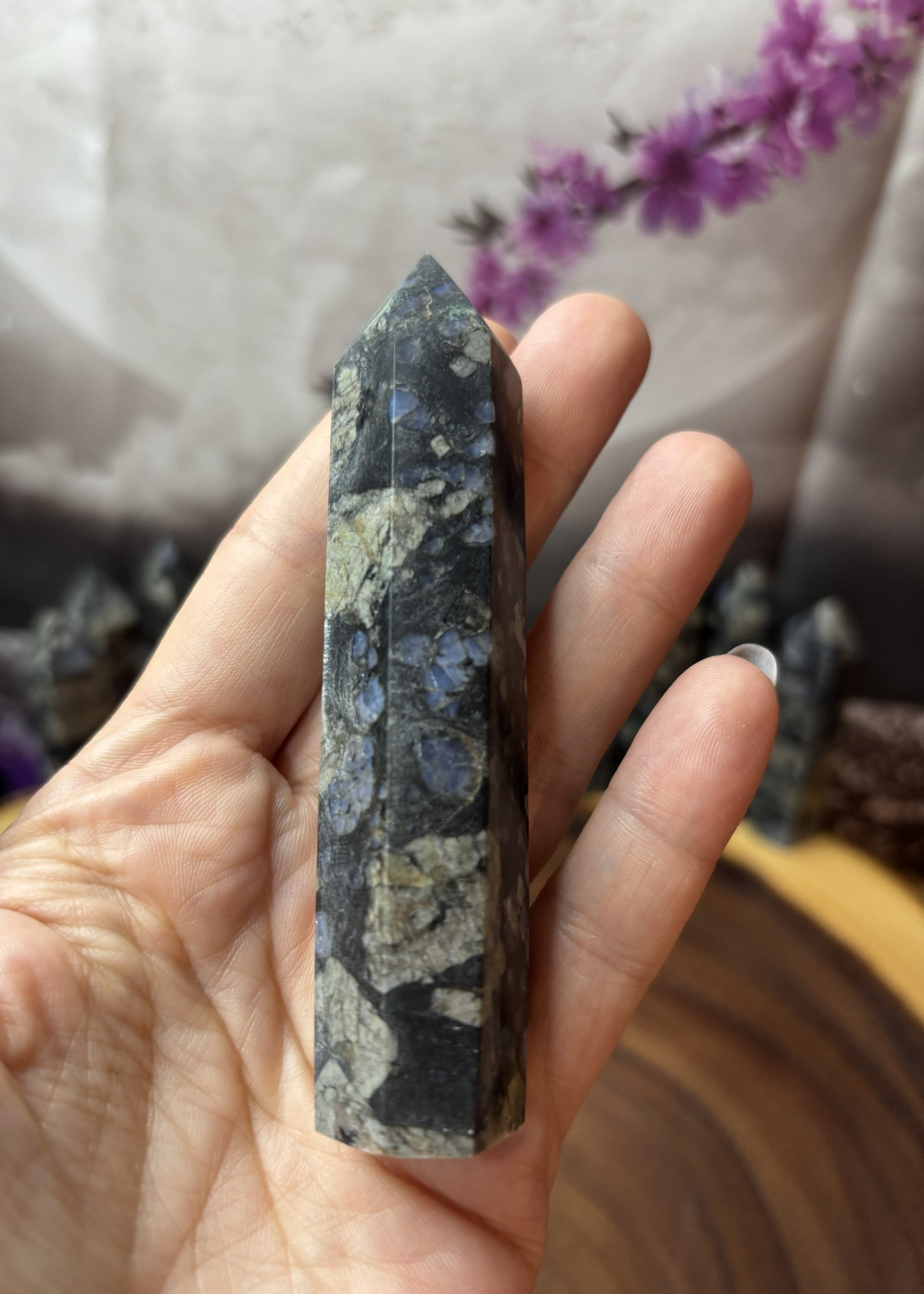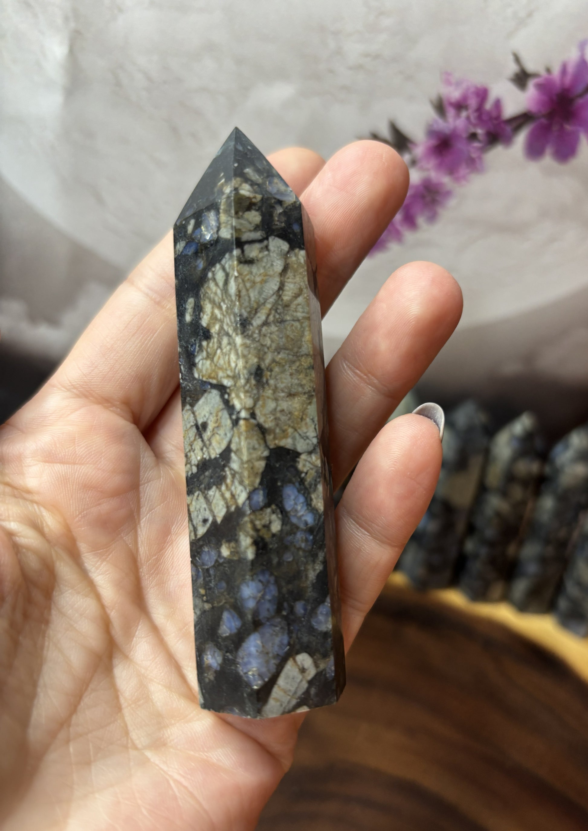 Que Sera is also known as Blue Liberite or Llanite & has a unique & powerful vibration which enhances the mental, physical, psychic & spiritual aspects of our lives. It is considered to be a Super stone, receiving energies from higher realms, connecting us with the power energy of Gaia & the Universe. This powerful psychic communication stone stimulates clairvoyance & psychic visions, enhancing intuition & connects us to our personal spirit guides. It lets us relax, reconnect, and regain our composure. It is a grounding stone.