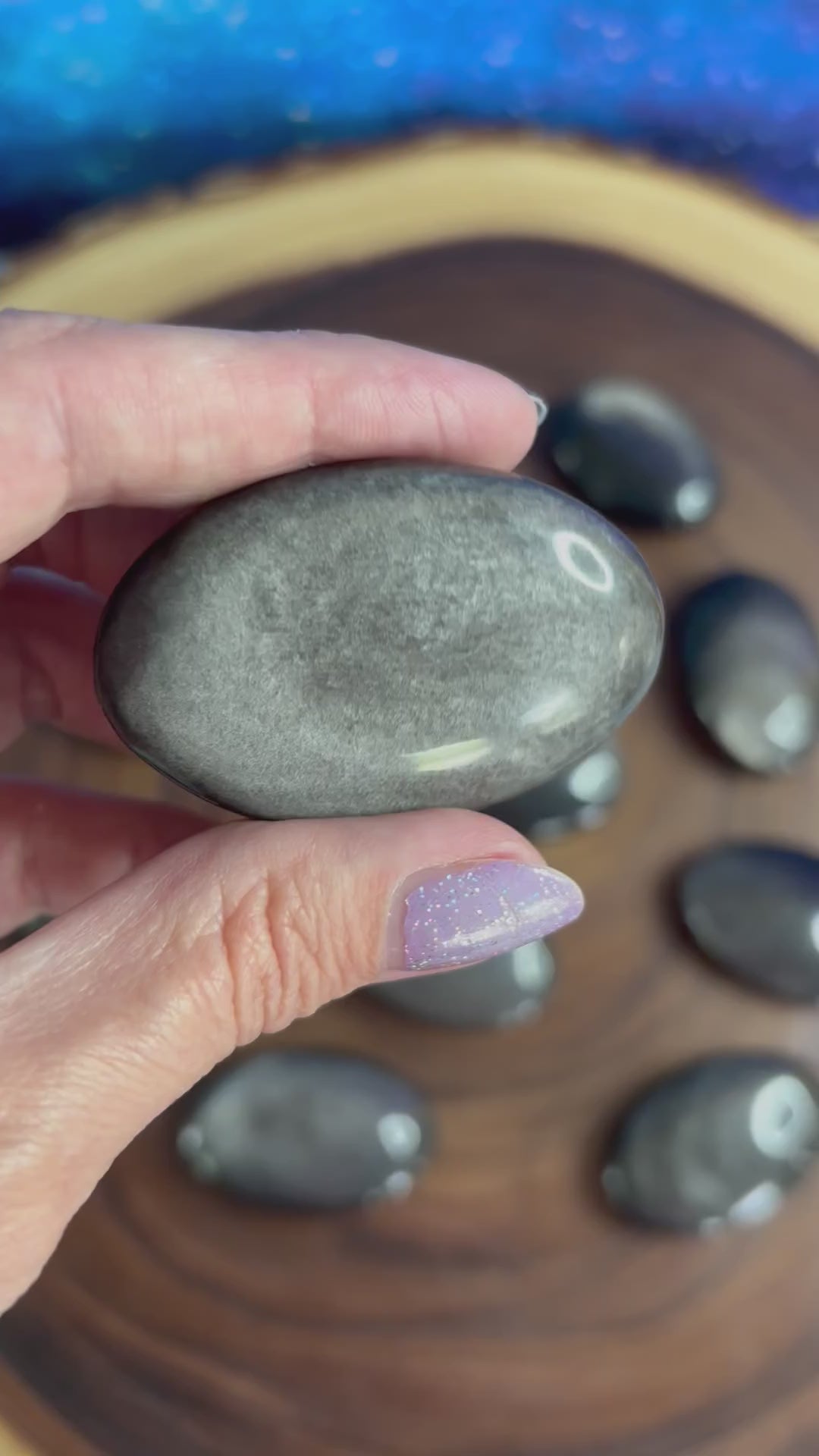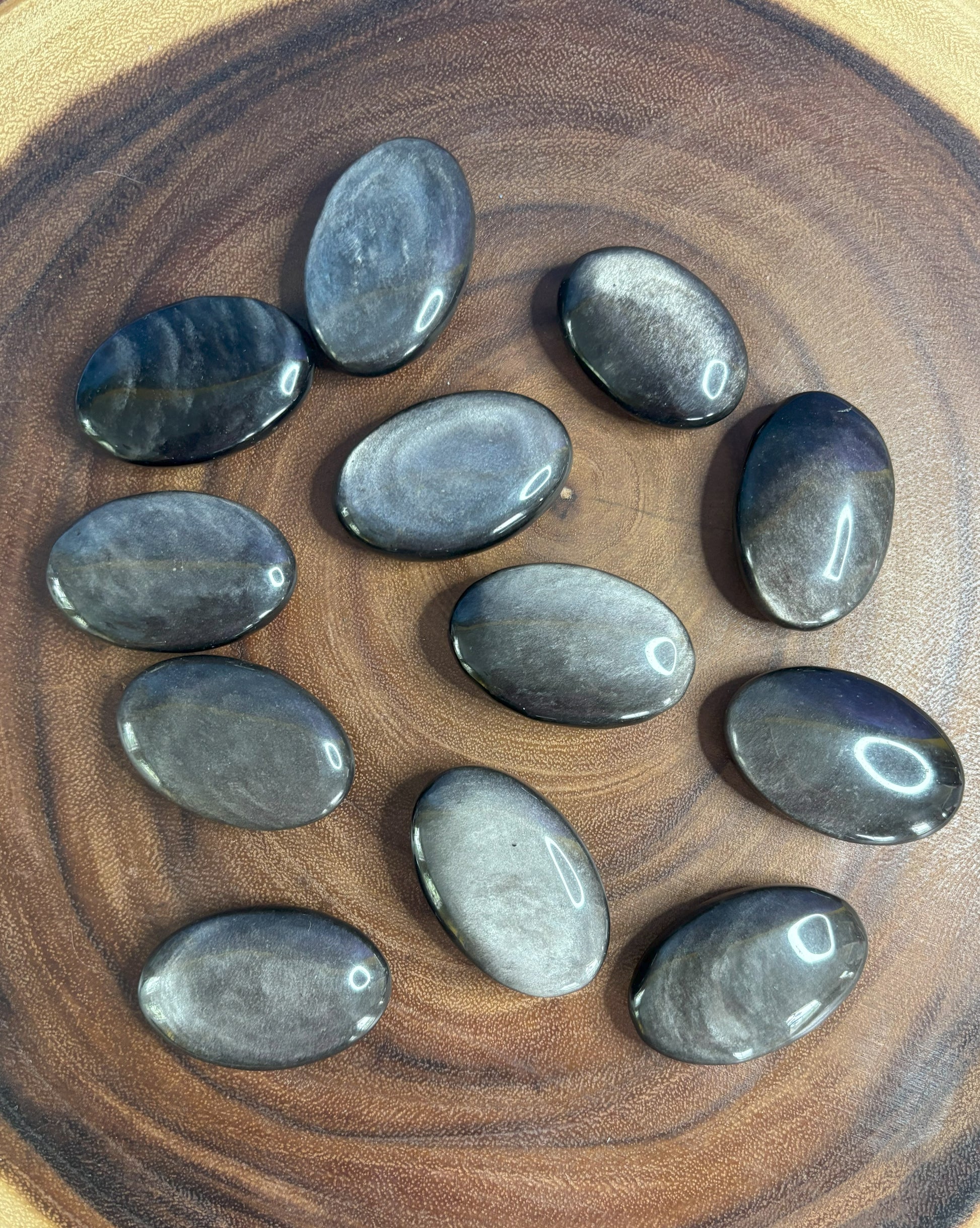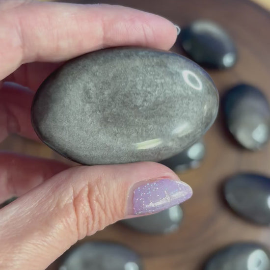 Silver Sheen Obsidian is often referred to as a 'mirror stone' & is used to access our true soul energy and subconscious through meditation and astral travel. It symbolically reflects our truth and provides insight into the very depths of our soul and our past life experiences that have created who we are in this life. It protects us, so that we can access our truth, release our anxieties and fear and clear barriers from our past, in a safe space.